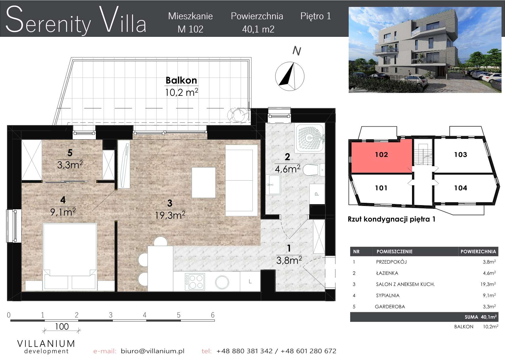 | 10 | 1 | 40,97m2 | – | balkon 4,44m2 |