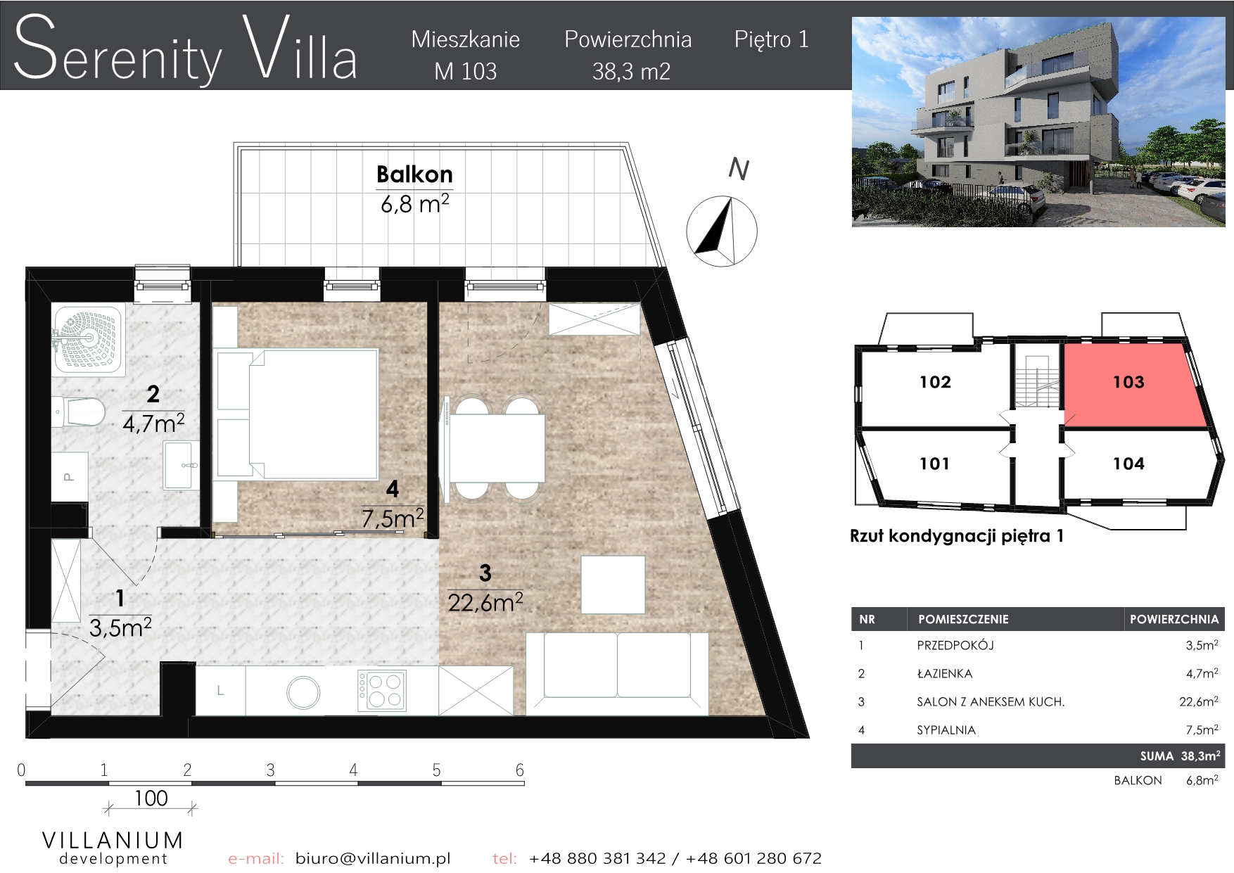 Oferta lokali jest zróżnicowana – od kawalerek jednopokojowych aż po pięciopokojowy penthouse ze spektakularnym tarasem. Mieszkania mają powierzchnie od 27 m2 do 96 m2.
