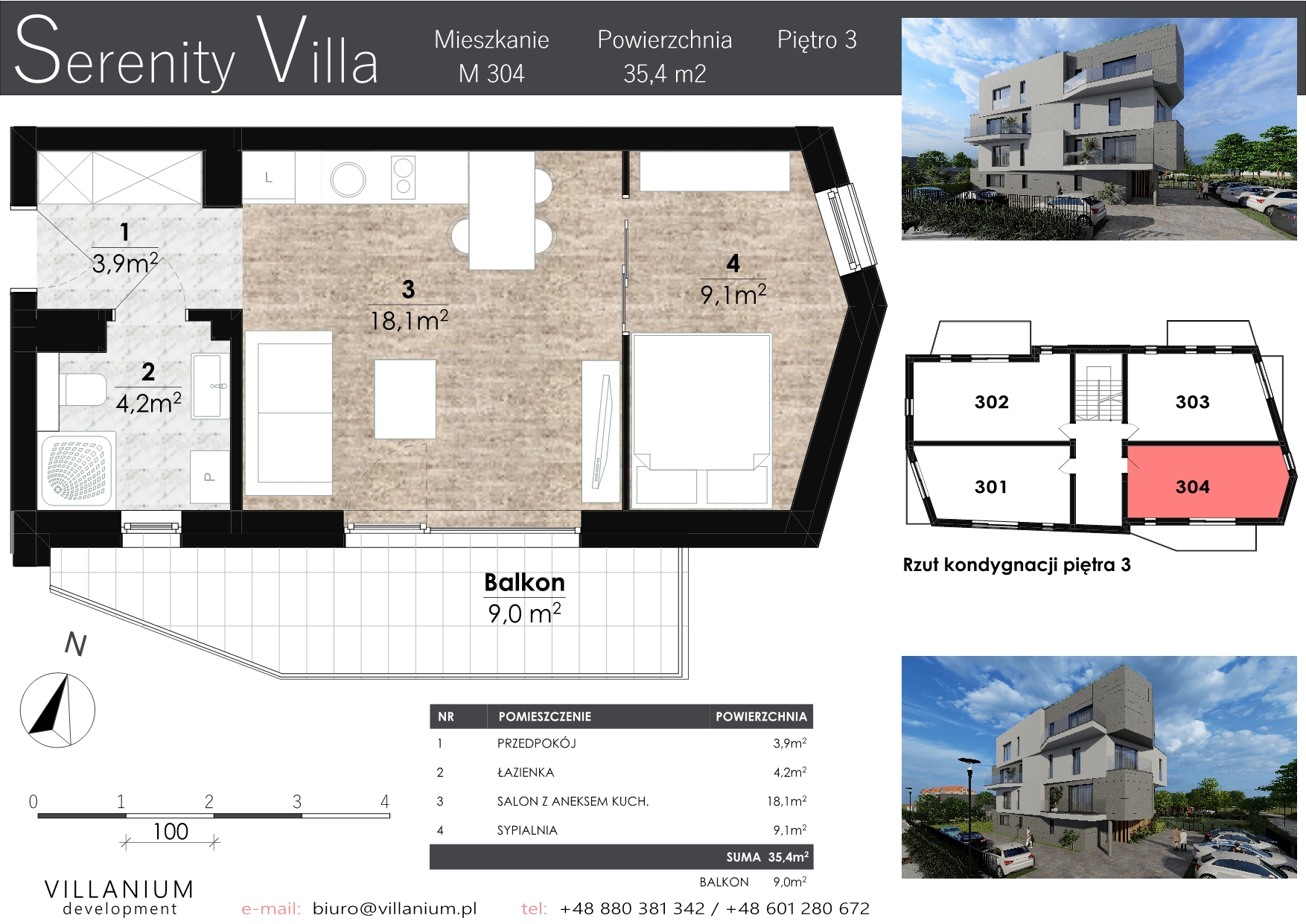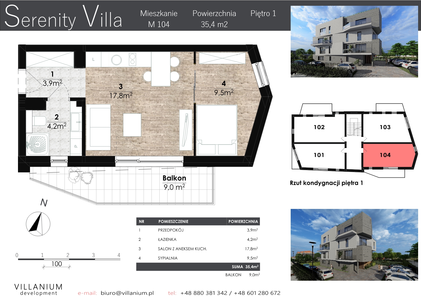 | 9 | 1 | 73,08m2 | – | balkon 4,03m2 |